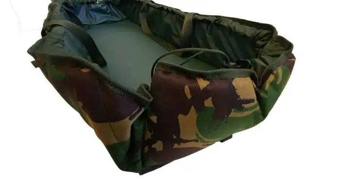 The mats can be used flat but also have the ability to be transformed into a cradle style with drawstring foam walls held securely in place with cord locks. Webbing handles either side allow the fish to be safely lifted and carried. There are three pegging points allowing security in windy conditions. The mat itself rolls up making it very compact an easy to transport. There is a webb carry handle and adjustable shoulder strap constructed from our hardwearing material on the outer and soft fish friendly wipe clean material on the inner. Sandwiched between this is a thick layer of soft foam. All in all a very robust, practical and safe system available in our Olive or Woodland Camouflage material.